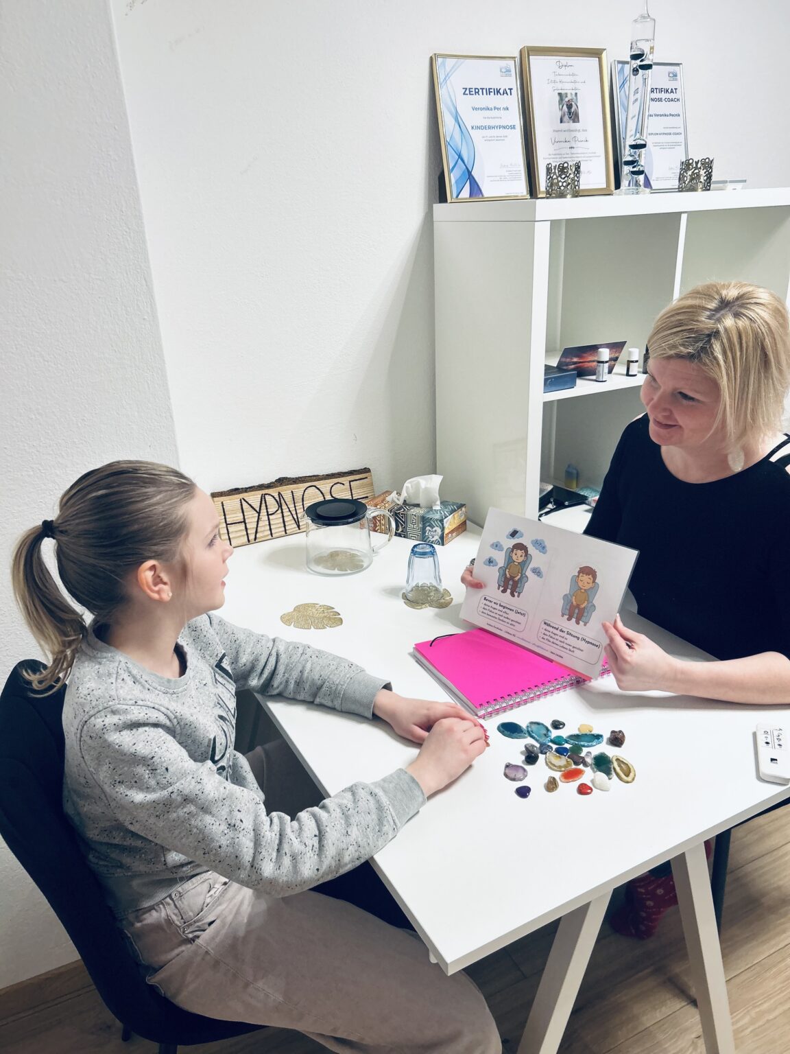 Ausführliches Vorgespräch, wir sprechen ausführlich über dein Thema, ich erkläre dir alles ganz genau und du äußerst deine Erwartungen und Wünsche
